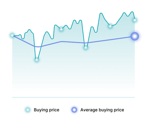 Auto Invest maakt gebruik van Dollar Cost Averaging (DCA), een populaire strategie onder beleggers om je blootstelling aan marktvolatiliteit te verminderen en je prestaties op de lange termijn te verbeteren. Met DCA koop je automatisch en met regelmatige intervallen een vast bedrag, ongeacht marktschommelingen en loop je niet langer het risico de markt te timen.